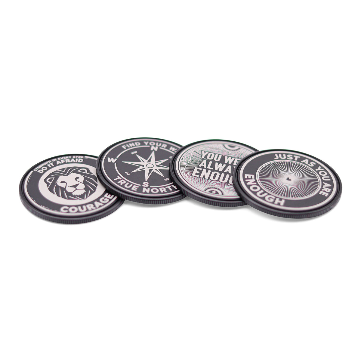 Discover our Encouragement Series—each coin is crafted from black anodized aluminum, 50mm (1.97") in diameter, with only 3 made of each design (4 coins total).